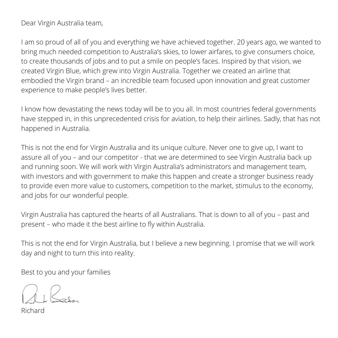 The Virgin boss has rebutted claims he wants 'free money' saying the arrangement would take the form of a 'commercial loan' Daily Mirror UK, 20 APR 2020 ![]() ![]() Sir Richard Branson had offered to put Caribbean retreat Necker Island up as collateral in return for a taxpayer-backed bailout of his airline group. The billionaire issued an impassioned plea for governments to save his business empire after admitting he has no “cash in the bank”. In a wide-ranging letter, the Virgin Group founder hit back at criticism for suing the NHS and claims he moved overseas for tax purposes. Sir Richard’s airlines have been hit particularly hard by the coronavirus pandemic and are asking for state aid. The billionaire insisted that money from British taxpayers – understood to be roughly £500m – to save Virgin Atlantic would come in the form of a “commercial loan” and “would not be free money”.... UPDATE: Virgin Australia Goes into Voluntary Administration Putting 16,000 Jobs at Risk British businessman Sir Richard Branson - whose Virgin Group owns 25 per cent of Virgin Australia - has promised "this is not the end" for the airline which has cancelled almost all flights during the pandemic Daily Mirror UK, 21 APR 2020 ![]() Virgin Australia has gone into voluntary administration after the country's Government again ruled out saving the airline, putting 16,000 jobs at risk. Having been forced to cancel almost all its flights during the coronavirus outbreak, the airline suspended trading in its shares on the Australian stock exchange last week. Virgin Australia is 25% owned by Richard Branson's Virgin Group, with other investors including Etihad, HNA of China and Singapore Airlines also having stakes. Australia's Federal Government reportedly rejected Virgin’s repeated requests for an emergency bailout package, with the airline already struggling with £2.5billion of debt. "Virgin Australia has entered voluntary administration to recapitalise the business and help ensure it emerges in a stronger financial position on the other side of the Covid-19 crisis," the airline said in a statement to the Australian Stock Exchange. The move follows a board meeting of the firm's international shareholders who voted against providing more financial support. The airline had asked the Australian government for £710 million but the request was denied. Virgin Australia's board has appointed Deloitte as voluntary administrators. Sir Richard Branson's Virgin Group owns 25 percent of Virgin Australia (Image: Virgin / BEEM) The airline, which services domestic as well as short-haul international destinations, was founded in 2000 by Branson and is one of Australia's main aviation providers. Following the news, in a letter to employees posted on Twitter, Branson has promised he will work "day and night" to ensure the airline doesn't go under, while referring to the fact the government had not stepped in to help as in other countries. "I am so proud of all of you and everything we have achieved together," he wrote. "20 years ago, we wanted to bring much needed competition to Australia’s skies, to lower airfares, to give customers choice, to create thousands of jobs and to put a smile on people’s faces. "Inspired by that vision, we created Virgin Blue, which grew into Virgin Australia. Quote: