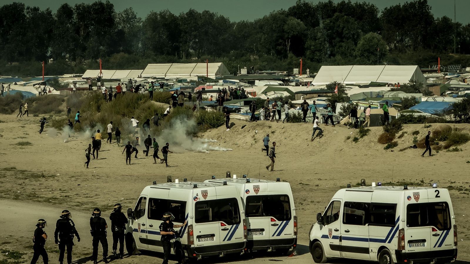 French Police TEAR GAS Migrants And Enter Water to Drag Them Back to Shore,,