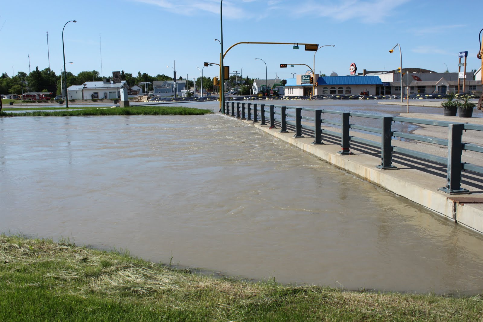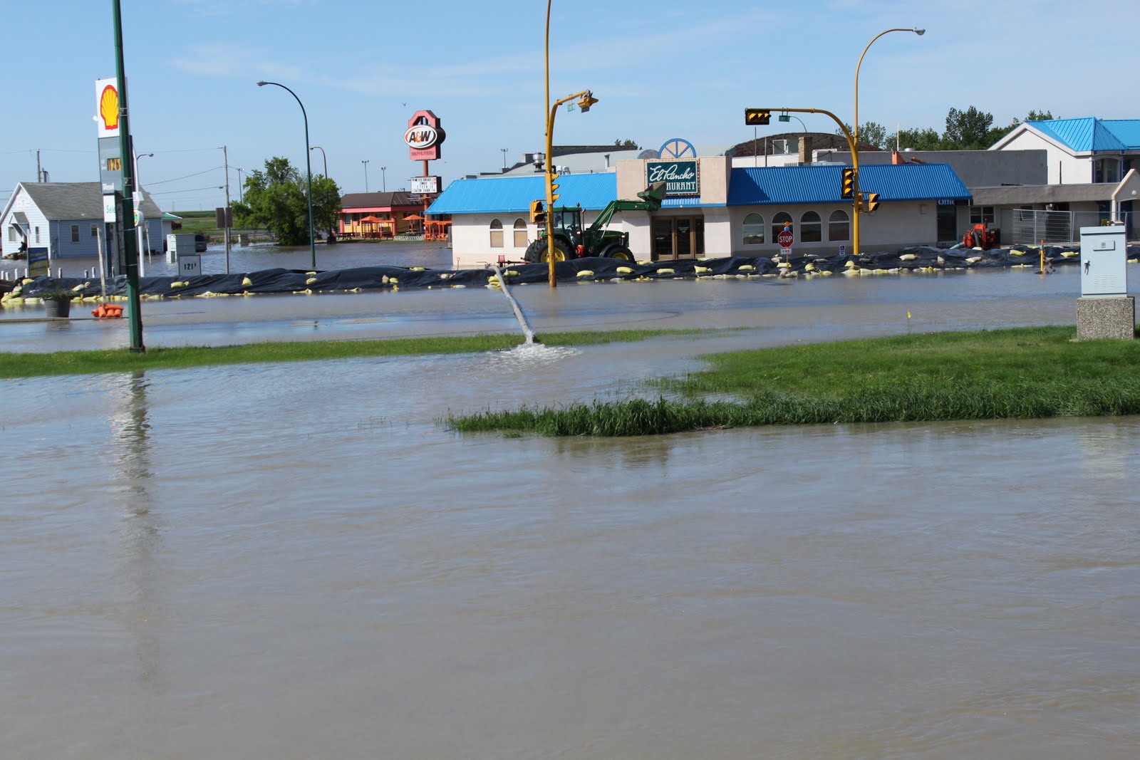These are some of the pictures from the many emails I received from many friends who have been fighting this years flood... This year is a complete right off for the many farmers who rely on the land to grow crops.. A Real Shame... ![]() ![]() ![]() Here a Semi Tractor lost sight of the highway and slipped off the shoulder of the Trans Canada Highway |