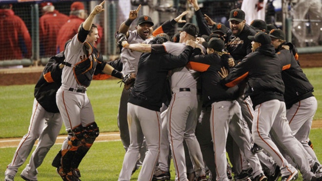 Updated Oct 23, 2012 3:04 AM ET SAN FRANCISCO (AP) After all the Giants had overcome to get back to the World Series, a late shower wasn't about to dampen their celebration. All right, it was a driving downpour. So reliever Sergio Romo danced through the raindrops, Tim Lincecum helped lead a soaked victory lap around the ballpark and Angel Pagan stayed on the field with his daughter long after his teammates took the party indoors. Hunter Pence got the Giants going with a weird double, Matt Cain pitched his second clincher of October and San Francisco closed out Game 7 of the NL championship series in a rainstorm, routing the St. Louis Cardinals 9-0 on Monday night. ''The rain never felt so good,'' series MVP Marco Scutaro said. ''We're going to the World Series, this is unbelievable.'' San Francisco won its record-tying sixth elimination game of the postseason, completing a lopsided rally from a 3-1 deficit. The Giants, who won it all in 2010, will host reigning AL MVP and Cy Young winner Justin Verlander, Triple Crown slugger Miguel Cabrera and the Detroit Tigers in Game 1 on Wednesday night. Verlander is set to pitch Wednesday's opener at AT&T Park. Giants manager Bruce Bochy insisted before Monday's game he had not planned any further in advance. Scutaro produced his sixth multihit game of the series and matched an LCS record with 14 hits and Pablo Sandoval drove in a run for his fifth straight game. ''These guys never quit,'' Bochy said. ''They just kept believing and they got it done.'' After falling behind 3-1 in the series at Busch Stadium, the Giants outscored the wild-card Cardinals 20-1 over the final three games behind stellar starting pitching from Barry Zito, Ryan Vogelsong and Cain. They also benefited from some strange bounces. On Pence's double that highlighted a five-run third, his bat broke at the label on impact, then the broken barrel hit the ball twice more. That put a rolling, slicing spin on the ball and caused it to change directions - leaving shortstop Pete Kozma little chance to make the play. Kozma broke to his right, figuring that's where the ball would go, but it instead curved to left-center. ''It was going to go in the hole and it ended up going up the middle,'' Kozma said. Injured closer Brian Wilson, with that out-of-control bushy black beard, danced in the dugout and fans in the sellout crowd of 43,056 kept twirling their orange rally towels even through rain in the late innings - a downright downpour when Romo retired Matt Holliday on a popup to Scutaro to end it. Romo embraced catcher Buster Posey as fireworks went off over McCovey Cove beyond right field. ''It's just very fitting the way everything has gone for us this season,'' Romo said of ending in the rain. ''The ups and downs, the injuries, the personal issues, whatever. What a ride for us all. It's very, very fitting that it rained right there.'' The NL West champion Giants won their first postseason clincher at home since the 2002 NLCS, also against the Cardinals. These 2012 Giants have a couple of pretty talented castoffs of their own not so different from that winning combination of 2010 ''castoffs and misfits'' as Bochy referred to his bunch - with Scutaro right there at the top of the list this time around. Acquired July 27 from the division rival Colorado Rockies, Scutaro hit .500 (14 for 28) with four RBIs in the NLCS. The 36-year-old journeyman infielder, playing in his second postseason and first since 2006 with Oakland, became the first player in major league history with six multihit games in an LCS. Now, he's headed to his first World Series. The Giants have All-Star game MVP Melky Cabrera to thank for helping his teammates secure home-field advantage in the postseason - while Cain was the winning pitcher the National League's 8-0 victory in July. Cabrera was suspended 50 games Aug. 15 for a positive testosterone test, then wasn't added to the roster by the Giants after his suspension ended. After rain fell on the Cardinals during batting practice, the skies turned blue and the weather cooperated. Anxious players on both sides hung over the dugout rails as the game began. Cain joined St. Louis' Chris Carpenter as the only pitchers with victories in two winner-take-all games in the same postseason. Carpenter, who lost Games 2 and 6 in this series, did it last year. Cain also pitched the Giants' Game 5 division series clincher at Cincinnati, when San Francisco became the first team in major league history to come back from an 0-2 deficit in a five-game series by winning three consecutive road games. ''I think to do it, the guys actually have to believe it can happen,'' Posey said. He delivered on an even bigger stage Monday as San Francisco saved its season once again. The Giants won their 20th NL pennant and reached their 19th World Series. Cain walked off the mound to a standing ovation when Jeremy Affeldt entered with two outs in the sixth. Affeldt then got Daniel Descalso to pop out with two runners on. Yadier Molina had four hits but got little help from the rest of the Cardinals, who went 1 for 21 with runners in scoring position over their final three games. ''It's about the team that's hot, and we went on a cold streak,'' Cardinals manager Mike Matheny said. ''We got to this point by being that team that was hot and taking advantage of opportunities. But we just couldn't make it happen these last two games.'' Cain added an RBI single to his cause and got some sparkling defense behind him. The play of the game went to shortstop Brandon Crawford, who made a leaping catch of Kyle Lohse's liner to end the second inning with runners on second and third that would have been a run-scoring hit. In the third, Scutaro, the second baseman, made a tough stop on a short hop by Carlos Beltran, and left fielder Gregor Blanco ran down a hard-hit ball by Allen Craig in left-center to end the inning. Cain's second-inning single made San Francisco the first team in major league postseason history